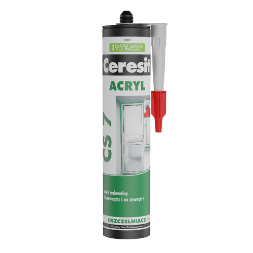 Ceresit CS 7 to uszczelniacz akrylowy o idealnej przyczepności do podłoży porowatych, który jest trwale elastyczno-plastyczny, może być malowany i stosowany wewnątrz i na zewnątrz. Jest jednoskładnikowym, wodoodpornym, elastycznym i odpornym na starzenie uszczelniaczem na bazie dyspersji akrylowej, znajdującym zastosowanie do wypełniania, uszczelniania spoin, pęknięć i ubytków we wszelkiego rodzaju materiałach budowlanych. Ceresit CS 7 doskonale nadaje się do uszczelniania ram okiennych i ościeżnic drzwiowych wykonanych z drewna, metalu, aluminium lub PCW z murem (beton, cegła, kamień) i tynkiem jak również do wypełniania szczelin wokół parapetów. Posiada wysoką przyczepność do wszelkich zwartych, porowatych i nasiąkliwych materiałów takich jak: gazobeton, gips, piaskowiec, płyty wiórowe i gipsowo-kartonowe oraz materiałów takich jak: powłoki malarskie, płytki ceramiczne i styropian. Ceresit CS 7 może być stosowany wewnątrz i na zewnątrz budynków, ale tylko do uszczelniania połączeń elementów podlegających minimalnym odkształceniom. Stwardniały akryl można malować wszelkiego rodzaju farbami, oklejać lub szpachlować.