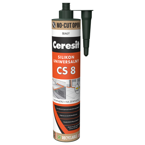 Ceresit CS 8 to silikon uniwersalny o doskonałej przyczepności. Jest on trwale elastyczny, odporny na warunki atmosferyczne i na działanie środków czyszczących oraz nadaje się do stosowania wewnątrz i na zewnątrz. Ceresit CS 8 służy do wypełniania szczelin pomiędzy materiałami budowlanymi i elementami wykończeniowymi. Posiada doskonałą przyczepność do szkła, płytek ceramicznych, drewna, emalii, porcelany i powierzchni malowanych. Znajduje również zastosowanie przy uszczelnianiu okien, szyb wystawowych, drzwi, pustaków szklanych, luksferów, wanien, brodzików, kabin prysznicowych, sedesów itp. Może również służyć jako uszczelniacz do łodzi, statków, samochodów, przyczep kempingowych oraz do rozmaitych uszczelnień w przemyśle.