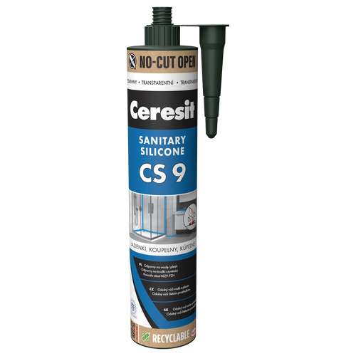 Ceresit CS 9 to silikon sanitarny, który jest trwały, odporny na środki czyszczące i warunki atmosferyczne, zabezpieczony przed grzybami i pleśnią, trwale elastyczny oraz posiada atest PZH na kontakt z wodą pitną. Służy do wypełniania spoin między płytkami ceramicznymi w narożach ścian i w połączeniach ścian z posadzką oraz do wypełniania szczelin między płytkami a urządzeniami sanitarnymi (brodziki, umywalki, zlewozmywaki, wanny itp.). Ceresit CS 9 zapewnia szczelne połączenie w miejscach, gdzie zwykłe spoiny ulegają pęknięciom. Silikon jest przeznaczony do stosowania w łazienkach, kuchniach, toaletach, kabinach prysznicowych, a także na zewnątrz budynków. Materiał ma znakomitą przyczepność do suchych, mało nasiąkliwych podłoży takich jak: szkło, płytki ceramiczne (glazura, terakota, gres), ceramiki, elementy porcelanowe, fajansowe i emaliowane. Produkt posiada atest higieniczny dopuszczający do kontaktu z wodą pitną.