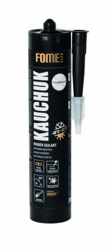 PRZEZROCZYSTY USZCZELNIACZ FOME FLEX KAUCHUK ALL SEASON jest elastycznym uszczelniaczem budowlanym na bazie polimeru winylowego, stosowanym do uszczelniania dachów i elewacji. Ze względu na szeroki zakres temperatury stosowania od -10oC do +30oC nadaje się do prac przez cały rok, niezależnie od sezonu. Używany do uszczelniania i naprawy kołnierzy okien mansardowych, kominków, pokryć dachowych, klejenia folii i membran dachowych oraz szybkiej naprawy przecieków w dachach i rynnach, nawet podczas deszczu. Uszczelnia nawet zanurzone powierzchnie. Odporny na promienie UV i pleśń. Posiada doskonałą przyczepność do wielu materiałów budowlanych. Kompatybilny z bitumami i foliami dachowymi.