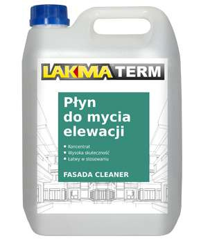 Lakma FASADA CLEANER, to skoncentrowany preparat do czyszczenia elewacji. Nadaje się on do mycia powierzchni wykończonych tynkami dekoracyjnymi, cienkowarstwowymi (akrylowe, kwarcowe, mineralne, mozaikowe, silikatowe, silikatowo- silikonowe, silikonowe), dachówki ceramicznej i betonowej, kostki brukowej, klinkieru, tworzyw sztucznych, okładzin elewacyjnych, szkła i cegły. Lakma FASADA CLEANER z łatwością usuwa zanieczyszczenia, tłuszcz, sadzę, pyły itp., a można go stosować zarówno wewnątrz jak i na zewnątrz pomieszczeń.