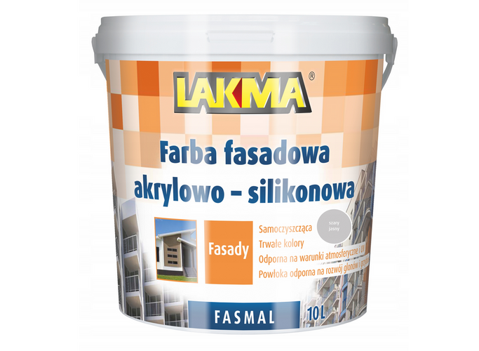 Lakma FASMAL to farba fasadowa, która jest produkowana na bazie dyspersji akrylowej, emulsji silikonowych, modyfikatorów i pigmentów. Jest ona dobrze przyczepna, daje matowe i gładkie powłoki, o dobrym kryciu i odporna na szorowanie, czynniki atmosferyczne, porost grzybów i glonów oraz promieniowanie UV. Lakma FASMAL nadaje się do malowania podłoży cementowych, cementowo-wapiennych, oraz tynków cienkowarstwowych - mineralnych, akrylowych, silikonowych, silikatowych lub silikonowo-silikatowych w przypadku ocieplania płytami styropianowymi. Można także z jej użyciem malować przedmioty z materiałów takich jak beton, tynk, cegła, kamień, drewno i materiały drewnopochodne.