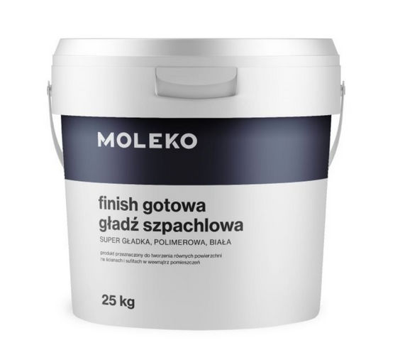 MOLEKO gładź finish to gotowy do użycia produkt na bazie polimerów służący do tworzenia równych powierzchni na ścianach i sufitach we wnętrzach pomieszczeń. Zalecany do zatapiania taśm dylatacyjnych i wzmacniających. Gładź finish może być stosowana na wszystkie twarde, czyste i suche powierzchnie oraz stare farby budowlane, w tym farby olejne i emulsje. Produkt idealnie nadaje się do cało powierzchniowego szpachlowania i fugowania płyt G-K.