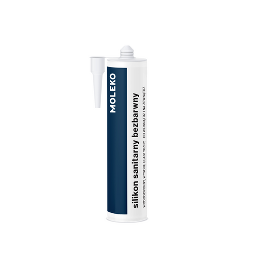 MOLEKO silikon sanitarny to trwale elastyczny uszczelniacz silikonowy o kwaśnym (octanowym) systemie utwardzania, zawierający środki zapobiegające powstawaniu i rozwojowi pleśni, grzybów i glonów. Odporny na działanie wody, promieniowania UV, niskich i wysokich temperatur, co pozwala na stosowanie produktu zarówno wewnątrz jak i na zewnątrz budynku.