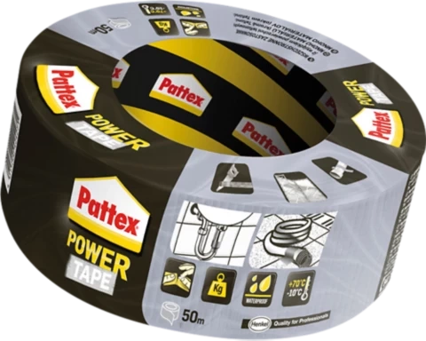 Pattex POWER TAPE to taśma o 1001 zastosowaniach służąca do mocowania, napraw, pakowania i uszczelniania. Jest ona trójwarstwowa, wzmacniana włóknami, wysoce wytrzymała, odporna na wodę i promieniowanie UV. Można ją odrywać ręcznie bez używania nożyczek, nadaje się do wnętrz i na zewnątrz. Pattex POWER TAPE łączy niemal wszystkie powierzchnie i jest niezastąpiona w domu, ogrodzie, samochodzie czy podróży.