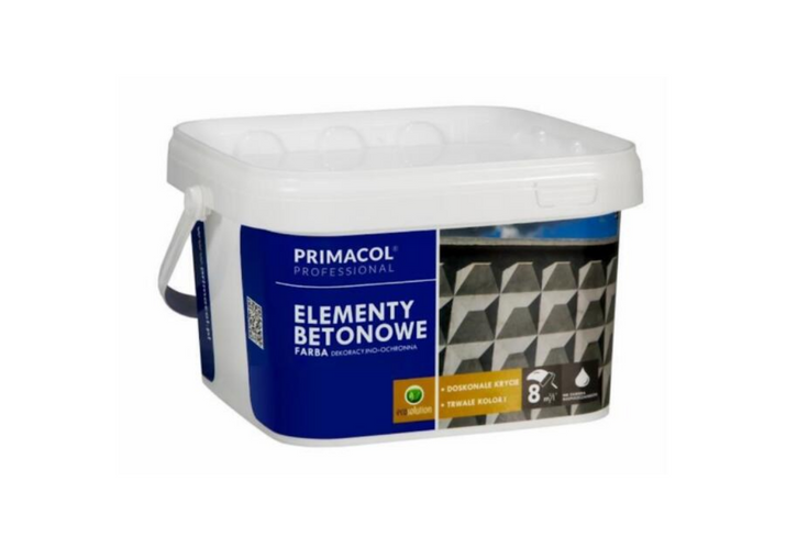 Primacol ELEMENTY BETONOWE to farba przeznaczona do impregnacji i renowacji płotów, elewacji budynków, balustrad i wszelkich innych elementów betonowych. Opóźnia porastanie mchami, glonami. Nadaje lekki połysk. Powierzchnia po pomalowaniu mniej chłonie wodę, dzięki czemu jest bardziej odporna na zabrudzenia i pękanie. Efekt odświeżenia uzyskujemy już po nałożeniu jednej warstwy, zaś zmiana koloru betonu wymaga nałożenia kilku warstw.