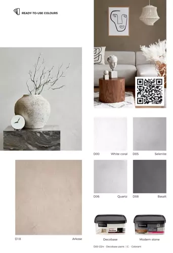 Dekoracyjna pasta do stosowania wewnątrz pomieszczeń. Pozwala uzyskać gładką, matową powłokę z optyczną głębią. Powstały efekt dekoracyjny jest niejednorodny i kojarzy się z wnętrzem rozłupanego kamienia. Produkt doskonale sprawdzi się we wnętrzach klasycznych, nowoczesnych i eklektycznych.