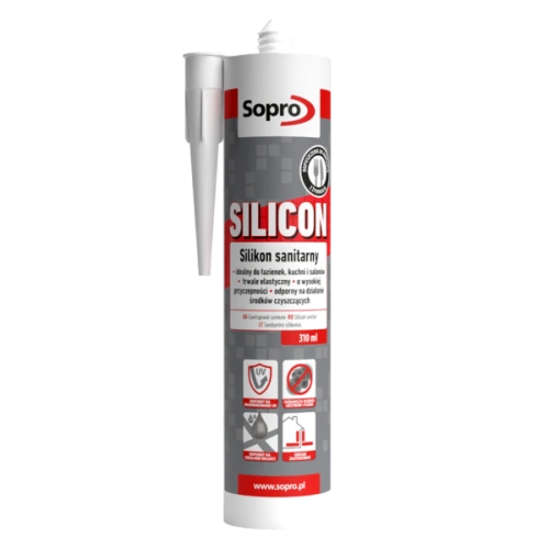 Sopro SILICON jest materiałem, który wypełnia spoiny na zasadzie sieciowania kwasem octowym kauczuk silikonowy. Służy do uszczelniania i elastycznego wypełniania spoin i dylatacyjnych w obszarach sanitarnych, jak również na tarasach i balkonach.